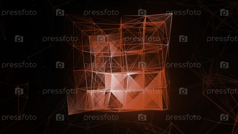 Абстрактный 3D-куб материи сплетения на синем фоне.Движение.Трансформация кубической формы линий и точек