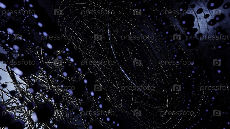 Абстрактный фон металлических струн и бисеров. Дизайн. Технологический торнадо в вращающемся движении