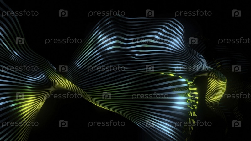 Волнистые полосы ткани перемещаются в пространстве. Дизайн. Красивая изогнутая полоса движется волнами от линий. Блестящая красивая группа волнистых линий