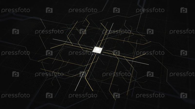 Искусственный интеллект, концепция компьютерной технологии. анимация. абстрактная кнопка, которая появляется на черном цифровом экране и распространяет сигналы
