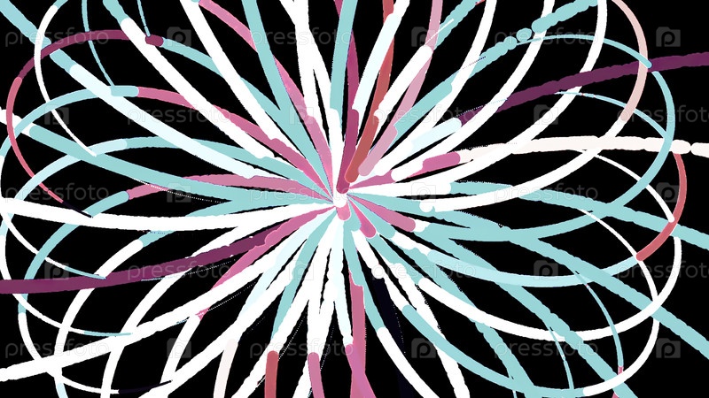 Черный фон.Движение.Белые вихревые линии, вдоль которых многоцветная краска циркулирует в разных направлениях в анимации.Высокое качество 4k кадров