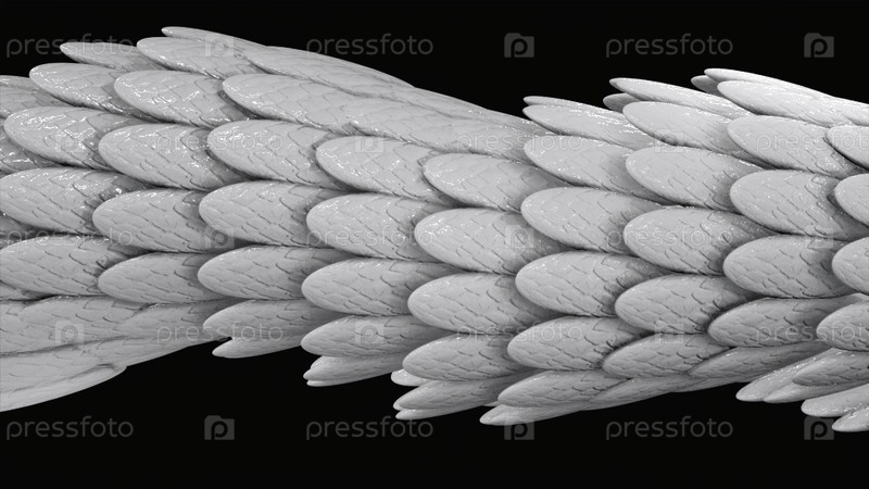 Черно-белая абстрактная анимация 3D с глянцевой змеей или драконьим чешуйкой, плавно движущейся на черном фоне