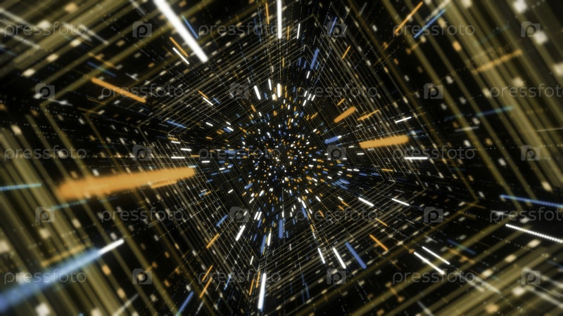 Звездный поток с светящимися полосами в туннеле. Анимация. Киберпространство тоннеля с захватывающим 3D-потоком неоновых линий. Красивый космический туннель из сияющих неонных линий и частиц