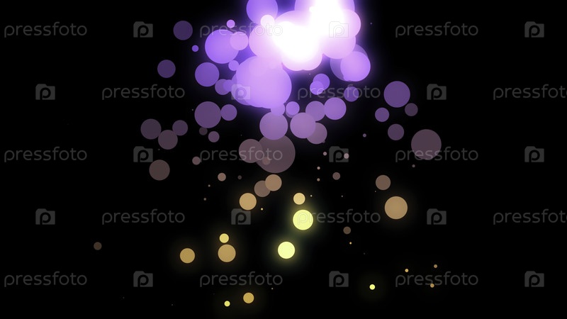 Абстрактные круглые частицы на черном фоне. Анимация. Прозрачные цветные частицы движутся на черном фоне. Круглоглазые цветовые и блестящие