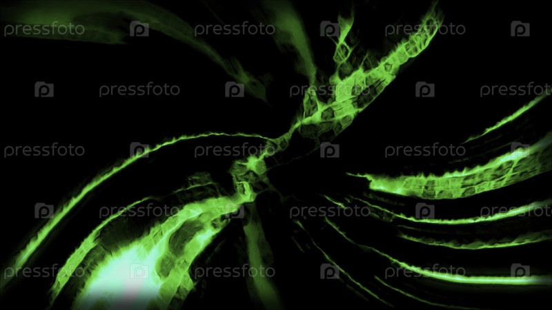 Темный фон с глубоким порталом. Движение. Зеленый и фиолетовый туннель в 3D-формате, который движется глубже
