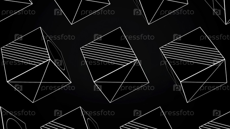 Анимация вращающихся кубов белых линий на черном фоне
