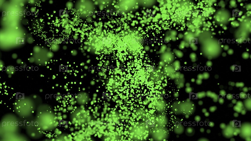 Вихрь частиц в потоке на черном фоне. Дизайн. Цветные частицы движутся в живом потоке роя. Частицы двигаются по течению 3D-пространства