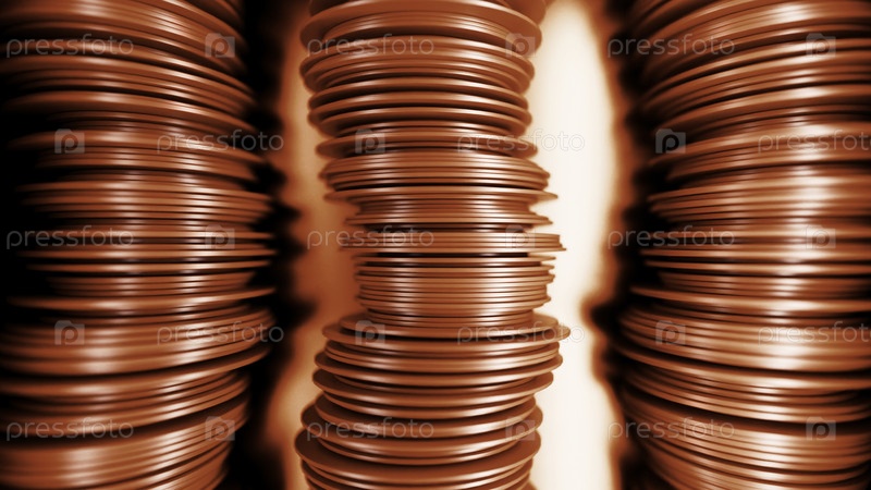 Абстрактные 3D геометрические башни плоских объектов на светлом фоне. дизайн. абстрактная анимация с движением дисковых волн