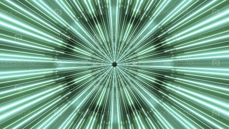 Летающий внутри неонного туннеля с лучами света.Дизайн.Мигающие огни временной скорости коридора