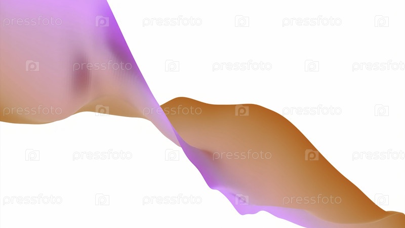 Красочная полоса ткани движется волнами. Дизайн. Прекрасная изогнутая полоска движется в волнах на белом фоне. Волнистая линия из деликатной красочной ткани