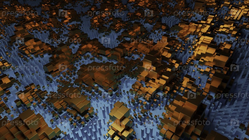 Киберполе с 3D-волновыми квадратами. Дизайн. Поле со квадратными колебаниями на поверхности. Квадраты поднимаются в волнах над 3d-поверхностью