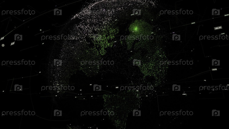 3D-планета в киберпространстве точек Анимация Концептуальная сетевая информация Киберпространство со сферой, линиями, точками и цифрами на заднем плане