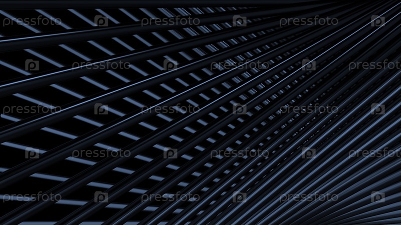 Абстрактная изогнутая текстура узких металлических труб, движущихся на черном фоне.Движение.Перекрещенные красочные 3D-полосы