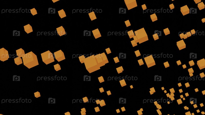 3D-кубики летают в потоке. дизайн. цветные кубики пульсируют в летящем потоке на черном фоне