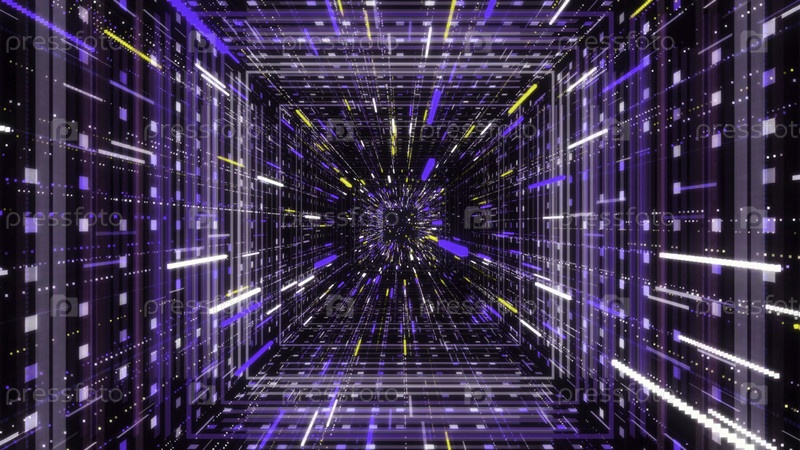 Графика движения для абстрактного центра обработки данных, сервера, интернета, скорости. Анимация. Красочная абстракция флуоресцентных неонных светящихся световых линий, перемещающихся в туннеле