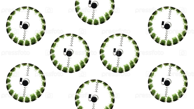Абстрактные крутящиеся колеса с зеленой растительностью СМИ Концепция современной зеленой фермы