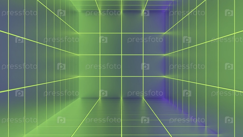 Красочный виртуальный кибертуннель с сетью. Дизайн. Киберсеть с красочным 3D-тунелем. Квадратный цветной туннель с виртуальной сетью