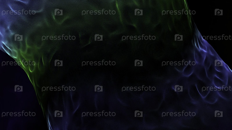 Синяя и зеленая жидкость похожая на вихрь, медленно вращающаяся на темно-синем фоне. Движение. Цифровой водоворот или торнадо, вращающийся и образующий волны, плавный цикл