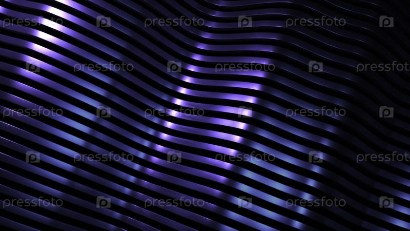 3D-фон с изогнутыми полосами металлических линий. Дизайн. Красивые металлические полосы изгибаются в волнах на черном фоне. Металлические линии медленно движутся, искривляясь