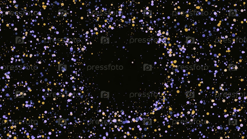 Цветные точки создают круг на черном фоне. Анимация. Фон цветных точек, случайным образом движущихся, создает круг в центре на черном фоне. Праздничное окрашивание пунктов с центром для вставки