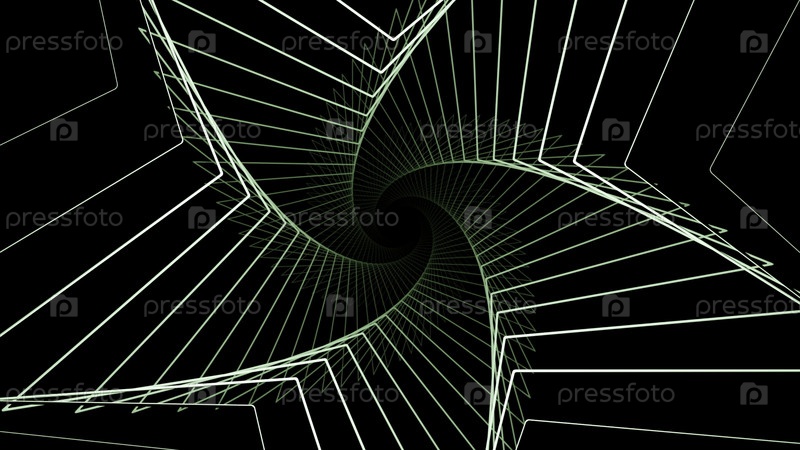 Черный фон. Дизайн. Огромная сетка световых треугольников, составляющих паутину, содержит туннель в абстракции и движется изнутри