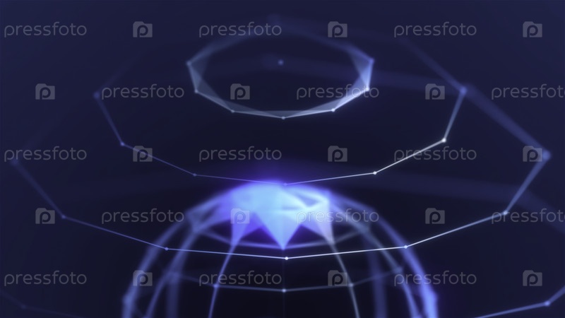 Виртуальная голограмма планеты с геометрическими сферами Абстрактная геометрическая планета со сферическими кольцами в виртуальном пространстве