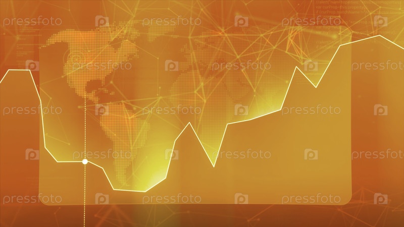 Абстрактный график оранжевой линии с движущейся точкой.Движение.Абстрактный график, показывающий рост и спад