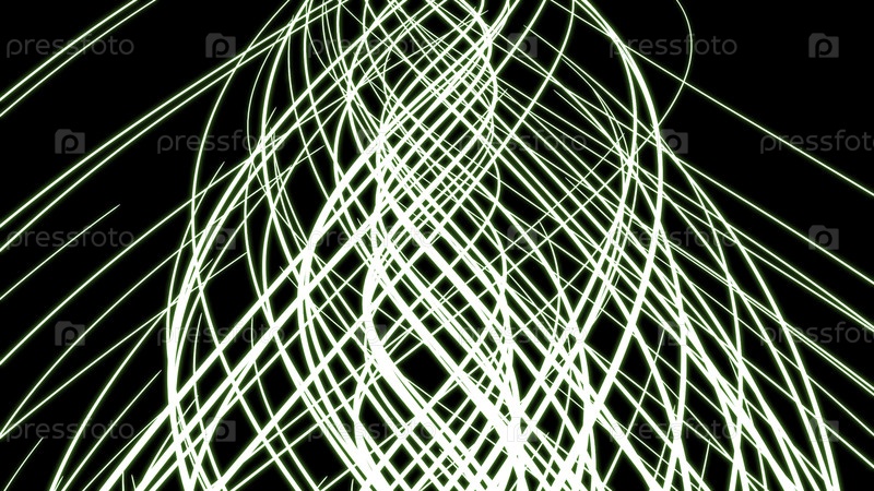 Абстрактные медленно движущиеся узкие световые полосы, изолированные на черном фоне.Движение. Переплетенные изогнутые красочные линии