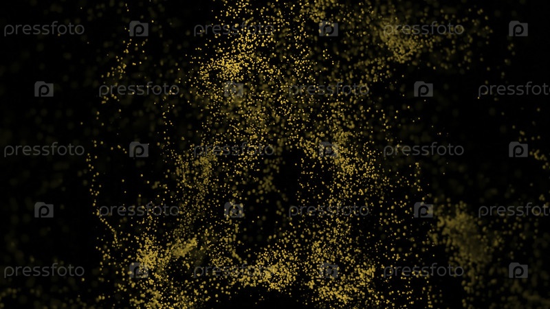 Вихревые потоки частиц на черном фоне. Дизайн. Яркий поток светящихся частиц в вихре. Движущиеся вращающиеся струи частиц