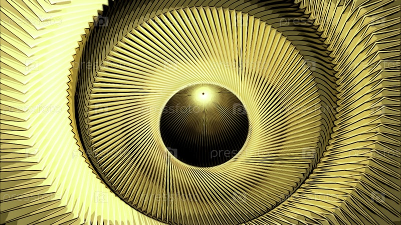 Абстрактные золотые кольца оптическая иллюзия. Дизайн. Металлические желтые круги, движущиеся вокруг центральной точки