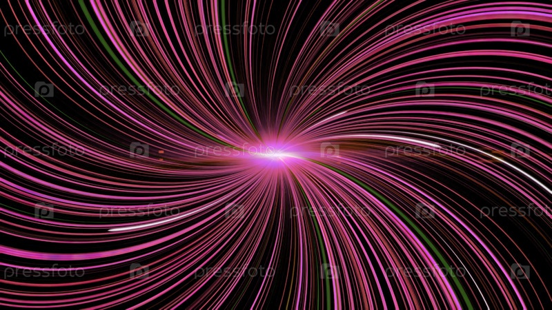 Спираль из цветных и светящихся линий. анимация. изогнутые линии излучаются и пульсируют от светового центра. спираль тонких цветовых линий с светлыми пулсациями