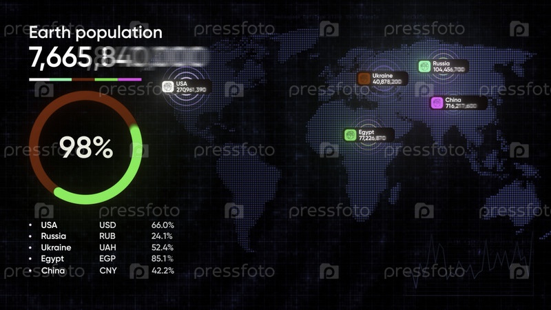Визуализация проблемы перенаселения на диаграмме.Движение.Карта мира и растущее количество людей