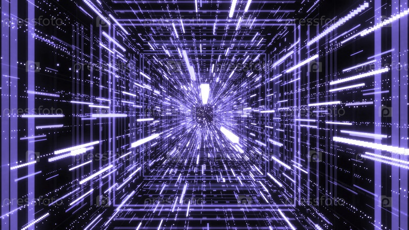 Звездный поток с светящимися полосами в туннеле. Анимация. Киберпространство тоннеля с захватывающим 3D-потоком неоновых линий. Красивый космический туннель из сияющих неонных линий и частиц