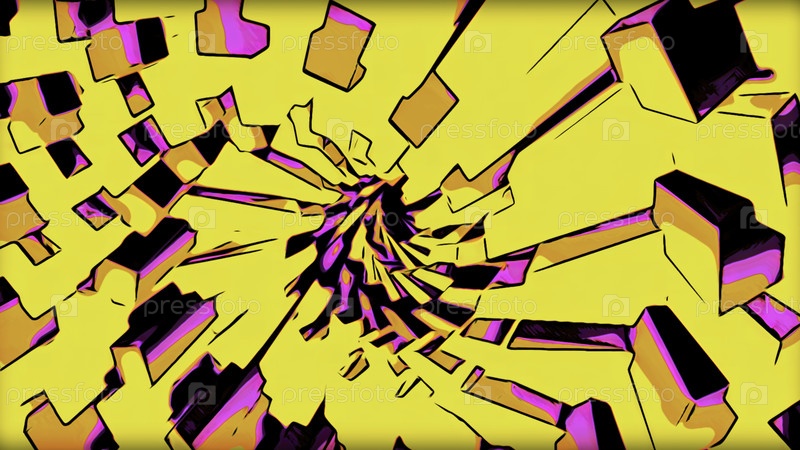 Бело-желтый фон.Дизайн.Вертящийся рисунок, сделанный в компьютерной графике, который быстро движется в разных направлениях