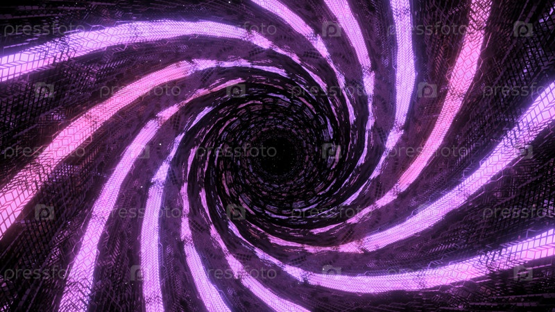 Вращающийся кибер-тунел с неоновыми линиями. дизайн. вращающаяся спираль неонных линий в туннеле. движение в биологическом кибер-туннеле с неоновыми линиями