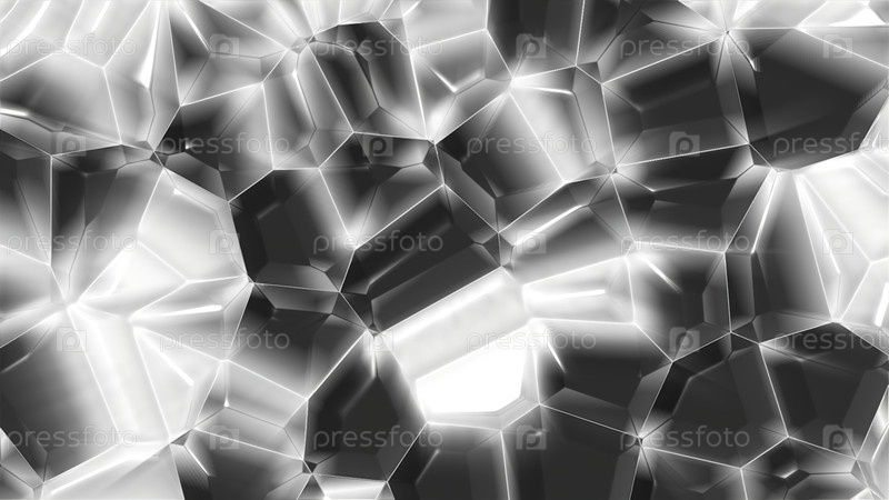 Кристаллические геометрические молекулы. Движение. 3D-геометрические формы с кристаллическим сиянием. Яркие светящиеся молекулы в виде кристаллов
