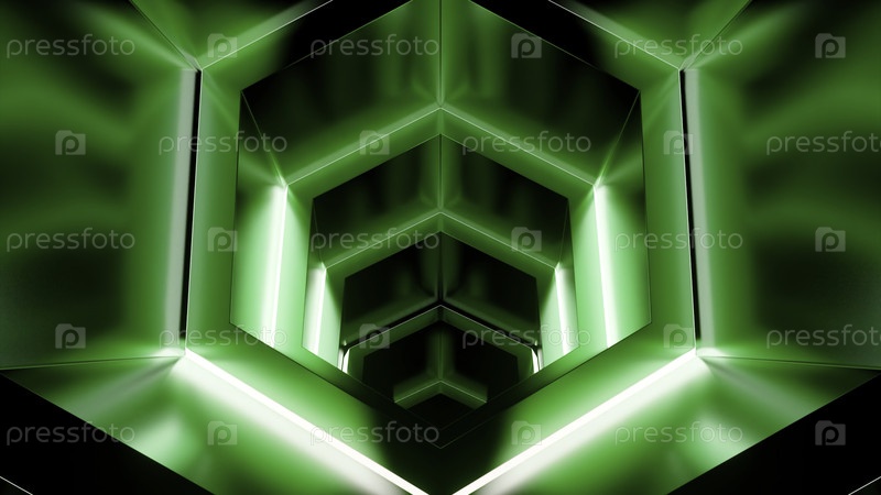 3D-анимация научно-фантастической индустриальной инопланетной архитектуры интерьера. дизайн. неонный интерьер пришельского космического корабля