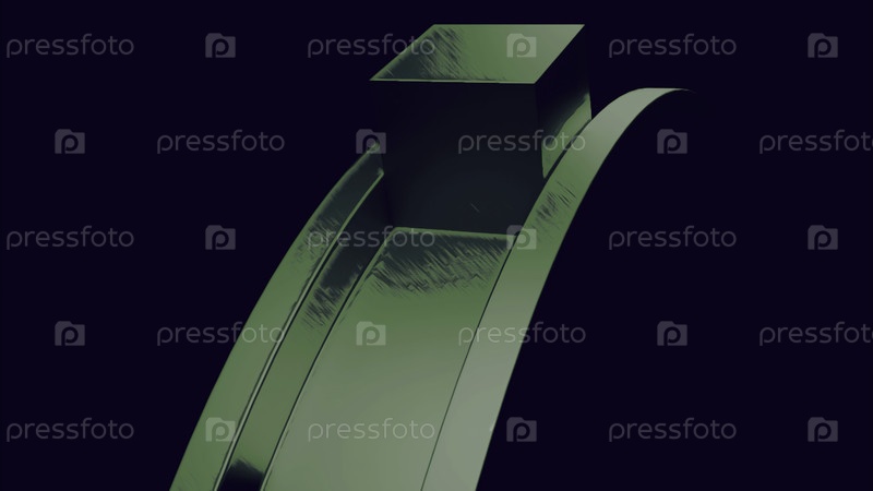 Абстрактное металлическое зеленое круглое колесо с движущимися 3D-кубиками. Дизайн. Сюрреалистическая вращающаяся фигура 3D
