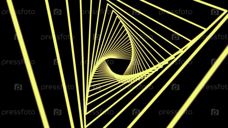 Абстрактная анимация с вращающимися треугольниками на черном фоне компьютерного рендера