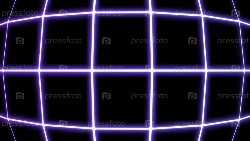 Абстрактная выпуклая сетка, движущаяся справа налево. Дизайн. Градиентные розовые и красные квадраты на черном фоне, плавный цикл