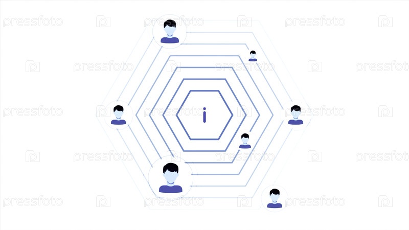 Abstract i icon символ интернета, распространяющий сигнал среди значков людей на белом фоне. движение. концепция социальных сетей