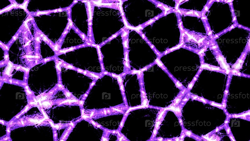 Темный фон. дизайн. фиолетовые и синие части, очерченные в сверкающих линиях в 3D-формате смещаются друг от друга и сужают спину