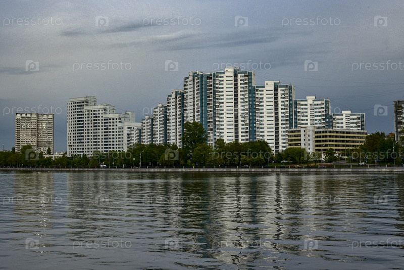 Современные жилые высотки на берегу Москва-реки в Нагатино