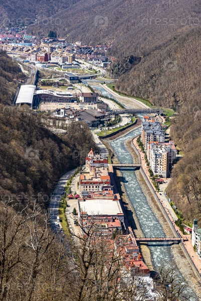 Живописный вид с высоты птичьего полета на Красную Поляну