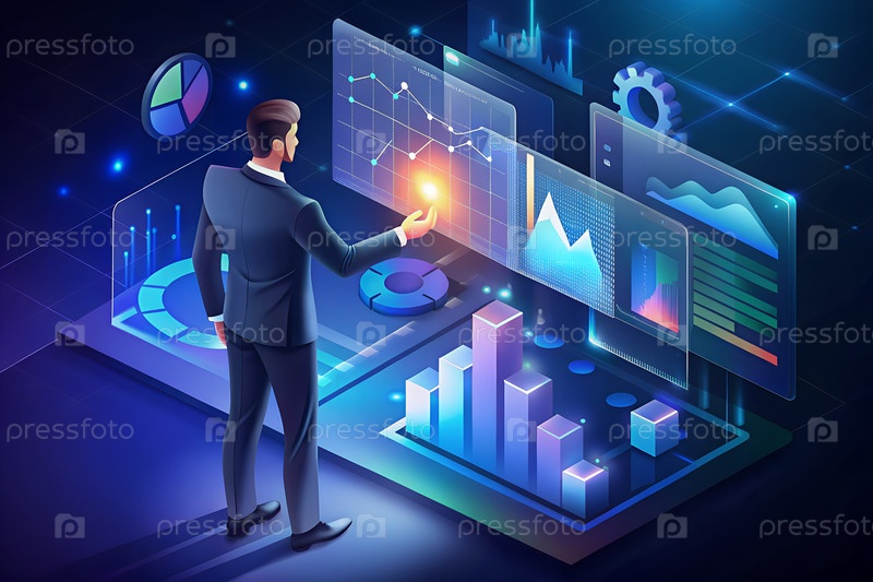Стратегия цифрового маркетинга и таргетинг аудитории, концепция анализа данных.Человеческое взаимодействие с панелями управления аналитикой данных