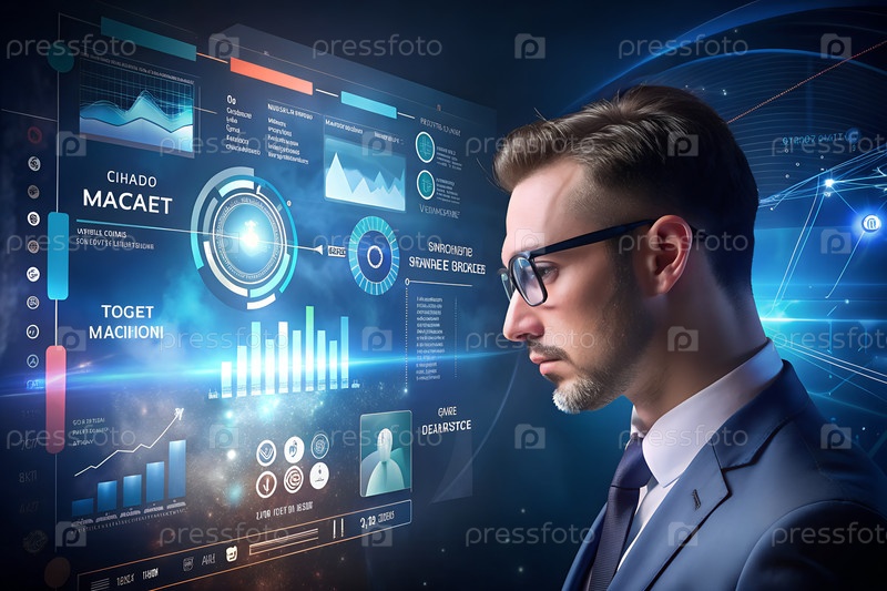 Стратегия цифрового маркетинга и таргетинг аудитории, концепция анализа данных.Человеческое взаимодействие с панелями управления аналитикой данных
