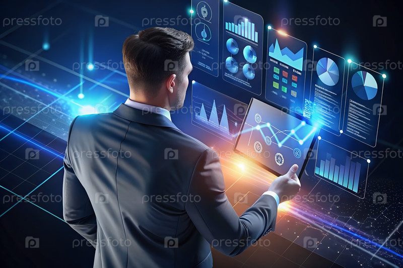 Стратегия цифрового маркетинга и таргетинг аудитории, концепция анализа данных.Человеческое взаимодействие с панелями управления аналитикой данных