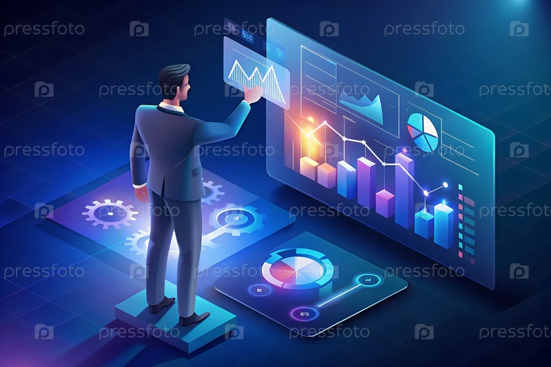 Стратегия цифрового маркетинга и таргетинг аудитории, концепция анализа данных.Человеческое взаимодействие с панелями управления аналитикой данных