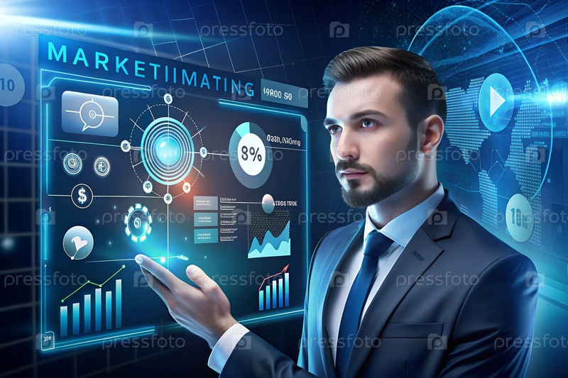 Стратегия цифрового маркетинга и таргетинг аудитории, концепция анализа данных.Человеческое взаимодействие с панелями управления аналитикой данных