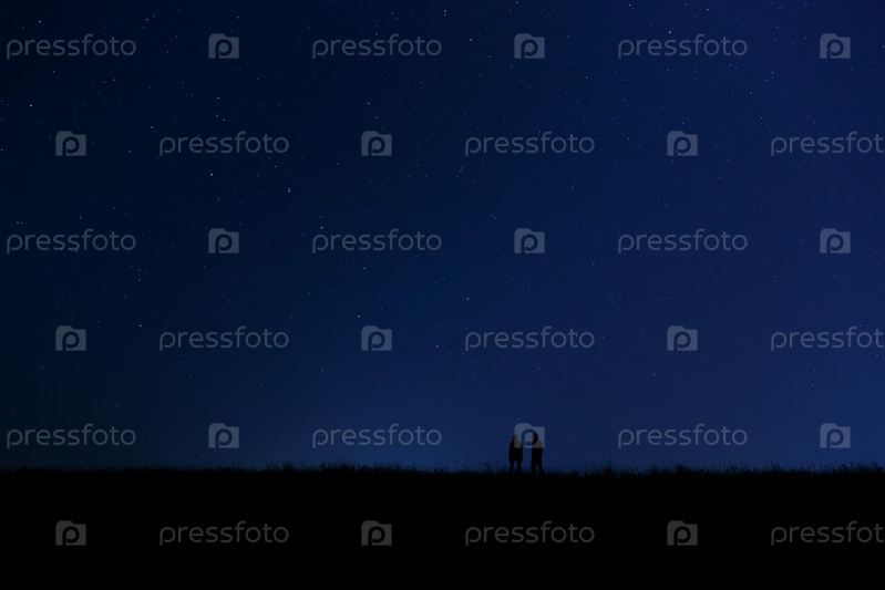 Ночное звездное небо над освещенными дикими цветами на переднем плане, ландшафт астрофотографии при длительной экспозиции. g